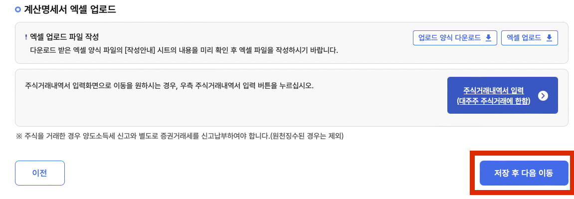 5. 주식양도소득금액명세서 스크롤을 쭉 내리면 엑셀 파일 업로드하라고 나오는데, 양식 뭔 말 인지 모르겠고..ㅋㅋ