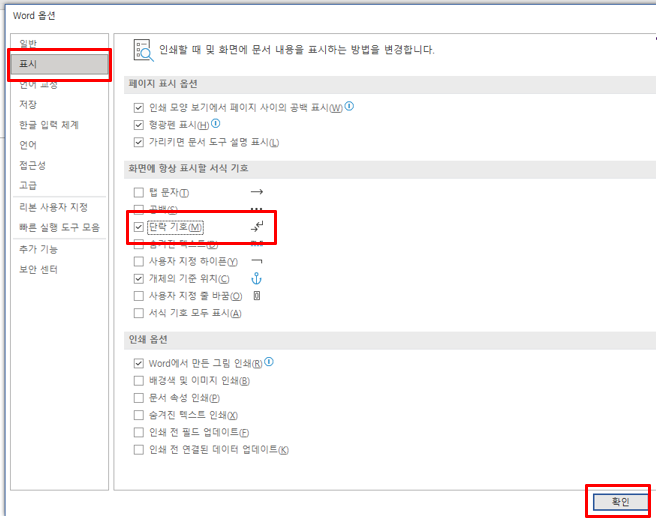 2. 더 쉽게는 워드 홈에서 단락기호 표시 해제