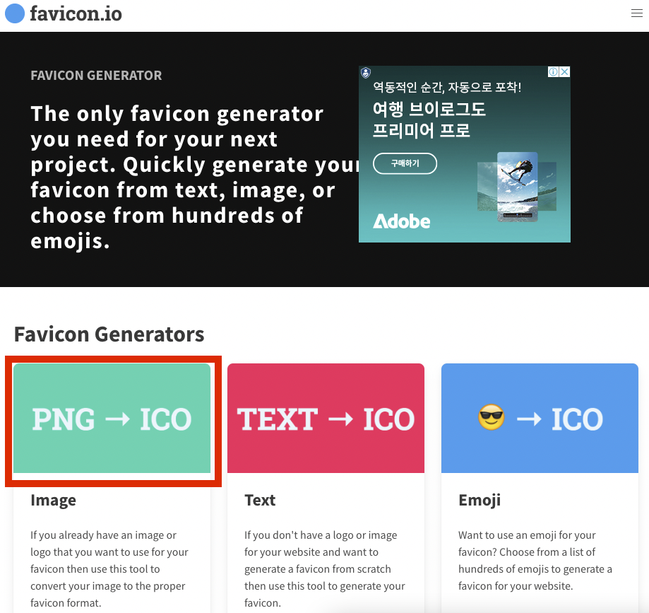 파비콘을 만들기 위해서는 JPEG, PNG, GIF 등의 이미지 파일을 ico 형식의 파비콘 파일로 바꿔줘야 하는데,