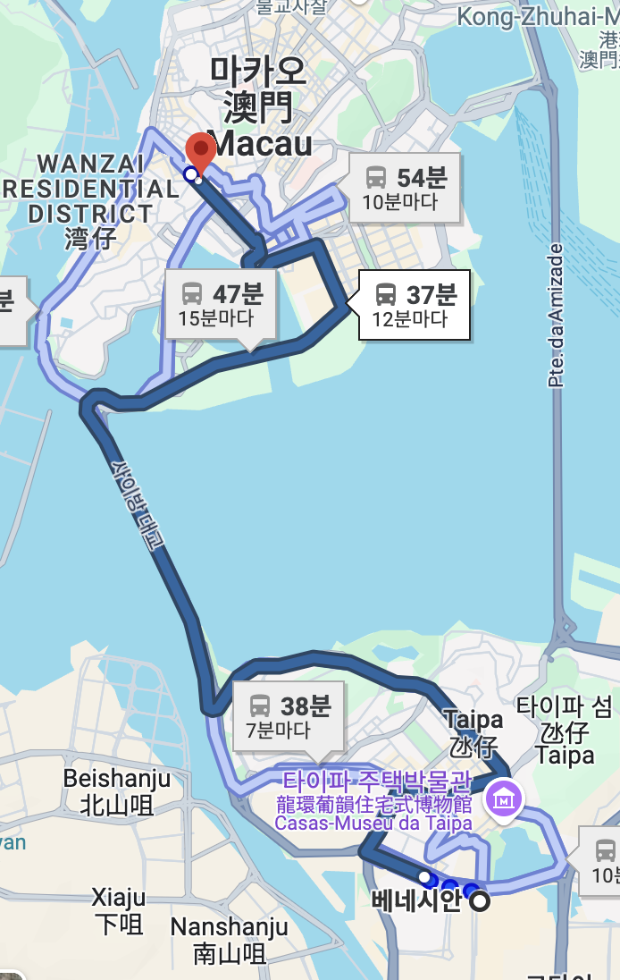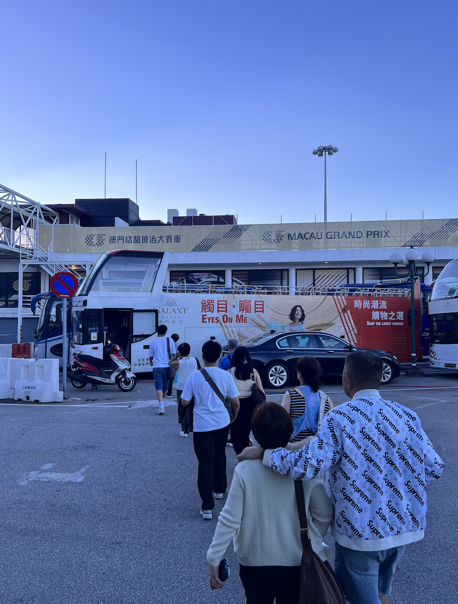마카오 도착해서 선착장에서 쭉 걸어서 나오면 여러 호텔들의 셔틀버스 정거장이 있는데요. 저희는 베네시안 호텔 셔틀버스를 타고 이동했습니다. 호텔 투숙객이 아니여도 자유롭게 이용할 수 있어요!