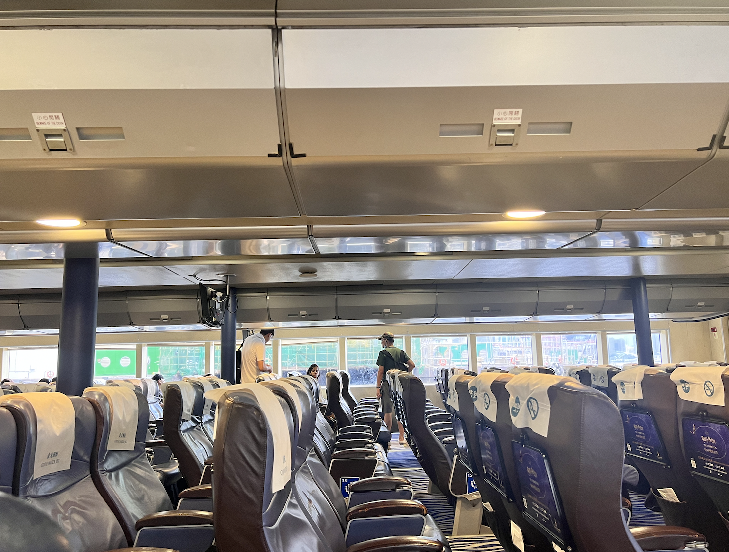 선착장에서 기다리면, 이렇게 탑승 자리가 적힌 주황색 스티커를 붙여주셔요!! 수동 시스템이라 신기했다는 !!ㅋㅋㅋ