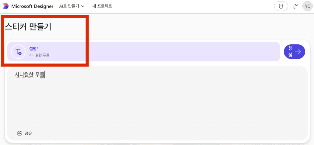 2-2. 스티커 만들기 설명란에 만들고 싶은 스티커 텍스트 적기