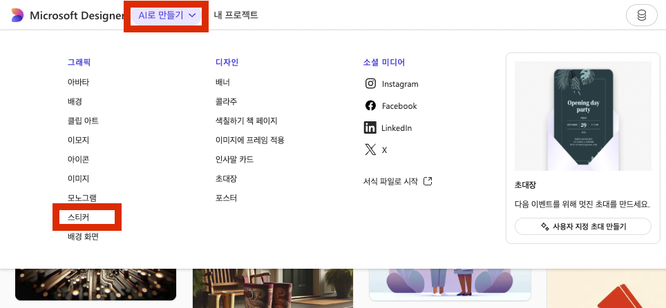 2-1. AI로 만들기> 스티커 클릭