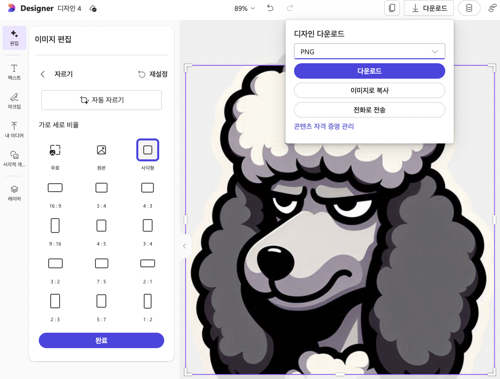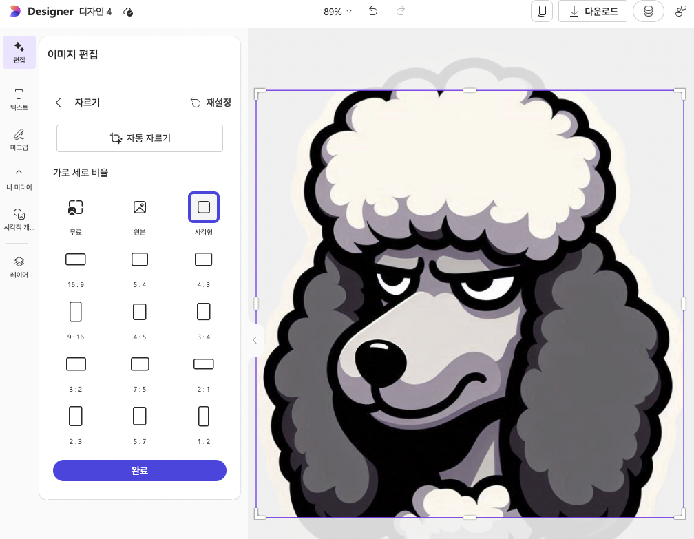 *마이크로소프트 디자이너에서 안되는 경우, https://www.iloveimg.com/ko 에서 온라인 포토 에디터 사용*