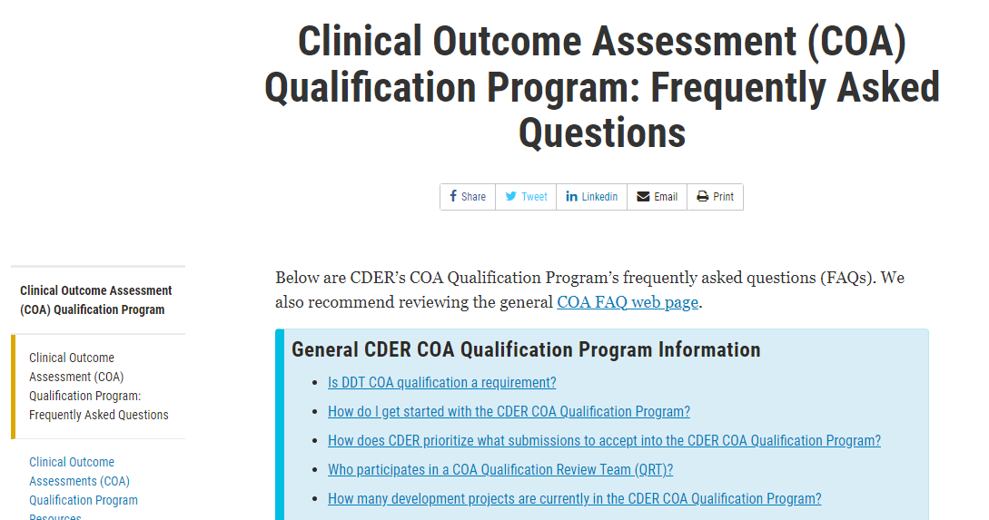 CDER Clinical Outcome Assessments (COA) Qualification Program: Frequently Asked Questions (FAQs)