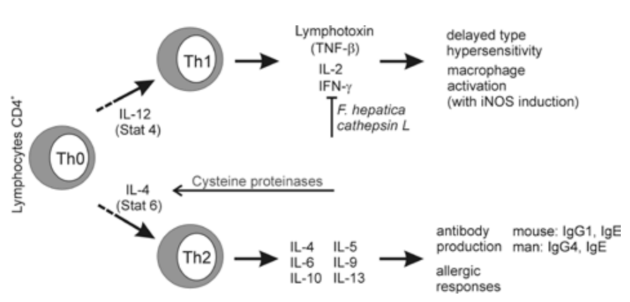 아래는 parastic infection시에 나타나는 Th1/Th2 면역반응에 대해 보여준 그림인데,